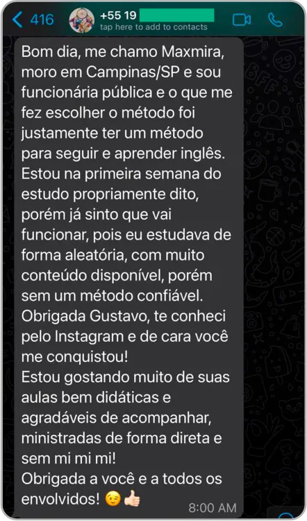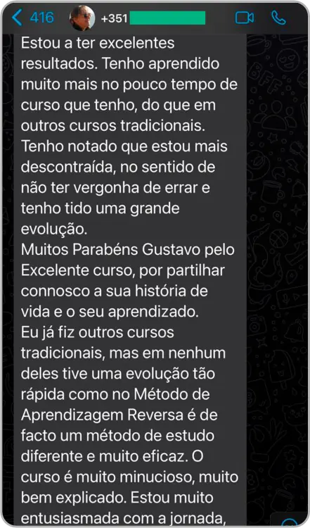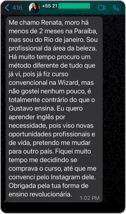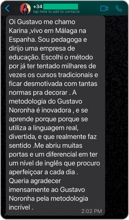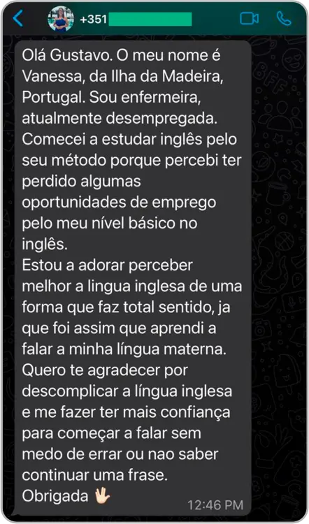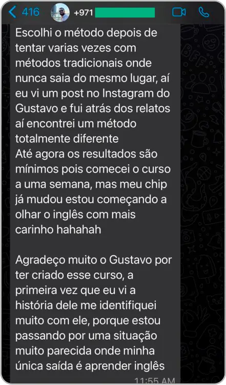 Em apenas 2 anos de estudos e pesquisas, alcançou a fluência no inglês e trabalhou como Intérprete, Tradutor, Notário Público, Enfermeiro, o mineiro começou a ganhar reconhecimento e popularidade por conta do seu sucesso. Gustavo resolveu ensinar a base do método que fez ele aprender inglês em pouquíssimo tempo. Foi batizado de Método de Aprendizagem Reversa e permite que você aprenda inglês de forma rápida, fácil e descomplicada sem focar em regras de gramática.
