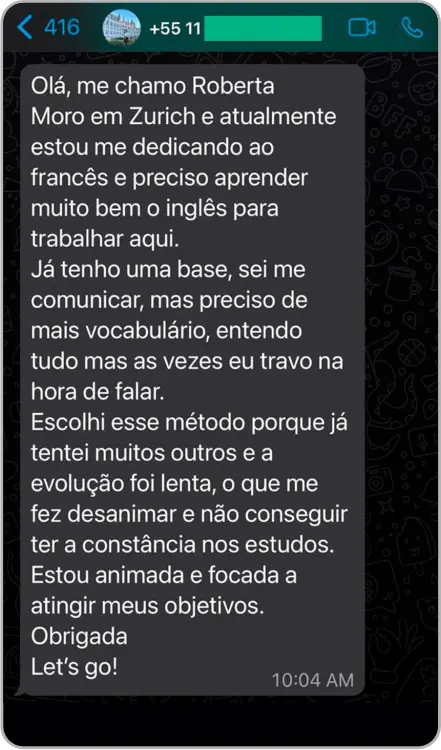 Nós temos milhares de prints como esses, pois todas as semanas temos novos alunos alcançando a fluência,