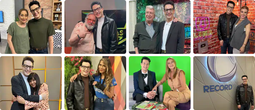 Concedeu entrevistas exclusivas para grandes nomes da televisão brasileira. Foi entrevistado por Mara Maravilha, Leão Lobo e participou do programa de TV do Décio Piccinini. Participou do programa IBTV exibido na TV caras, do Link Podcast na Rede Record, do A Tarde é Sua com Sônia Abrão e na Rede Gospel no programa Tudo de Bom pra Você com a Keila Lima.
